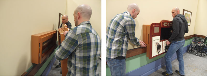 ABBY is then mounted onto, and fastened to the offset wall mount housing, proud of the chair rail. We recommend that the bottom of the ABBY front plate is placed roughly 70cm from the floor, in order to best accommodate wheel-chair and ambulatory residents.