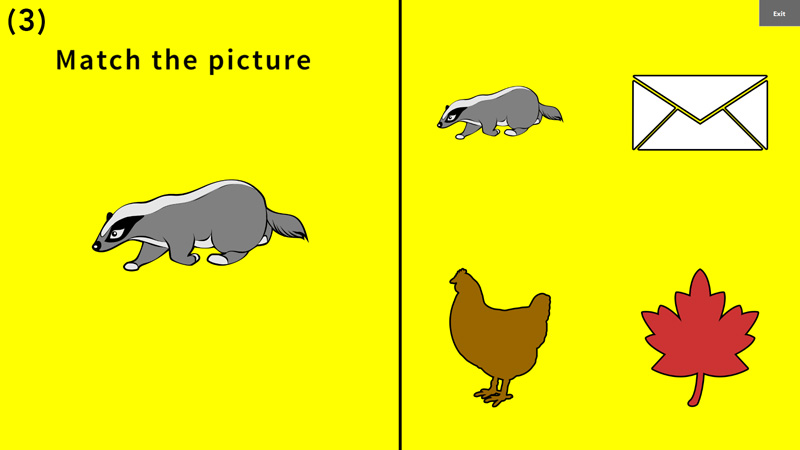 The ABBY matching game (Picture 3) is very simple matching game we specificaly designed for people leaving with dementia. It starts with a very simple open matching game of two images and increases in complexity to become a full open matching game at it's highest level. The game is desighed to set the person playing for success by giving them the option to try again and go a step backwards if the elvel they are at is too difficult for them.